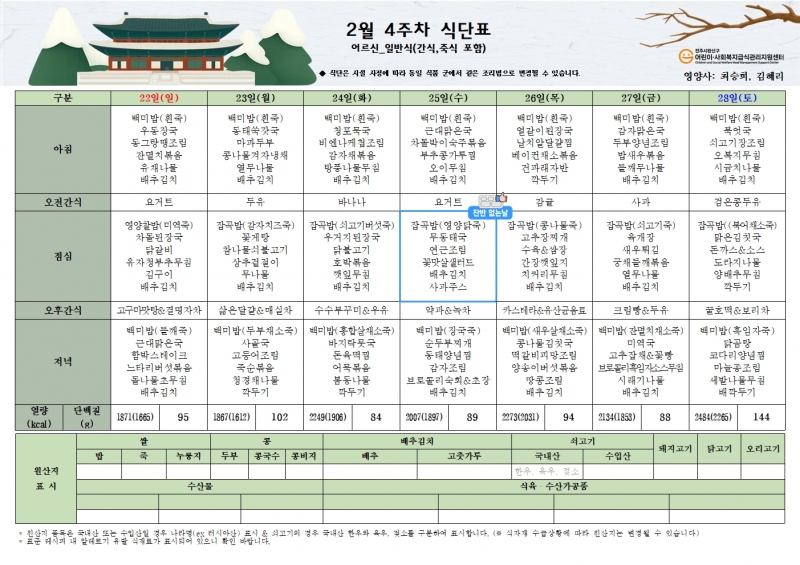 2026³â 02¿ù ½Ä´ÜÇ¥ÀÔ´Ï´Ù.